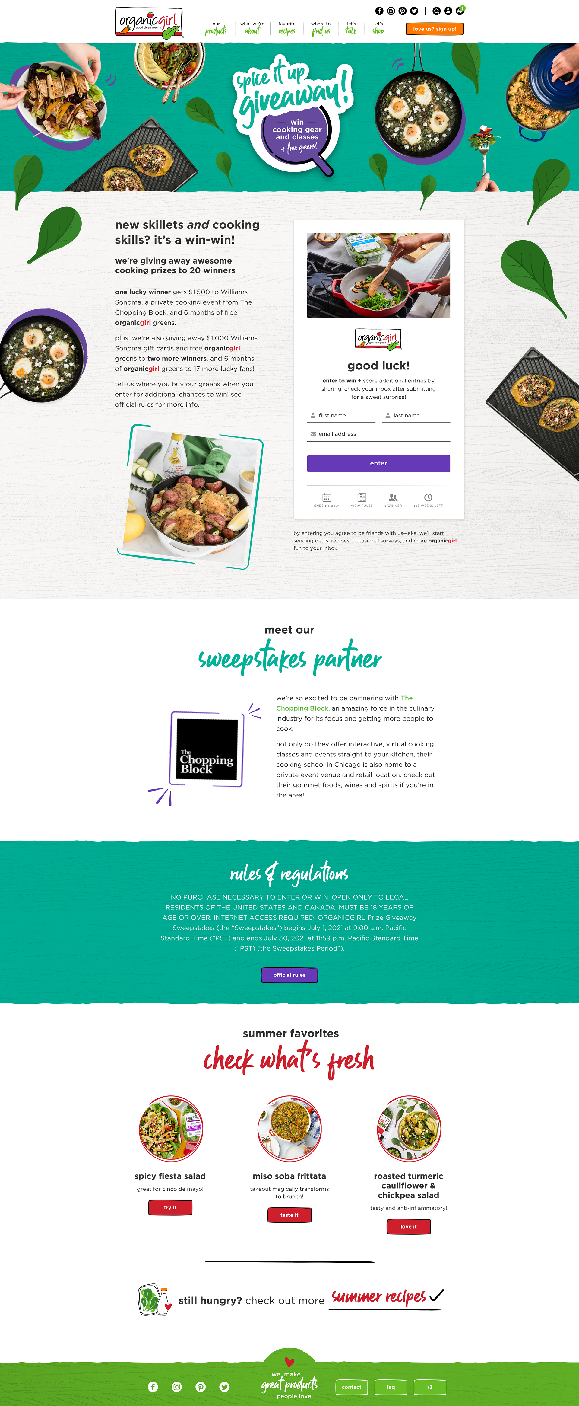 Website headers, landing pages and recipes
